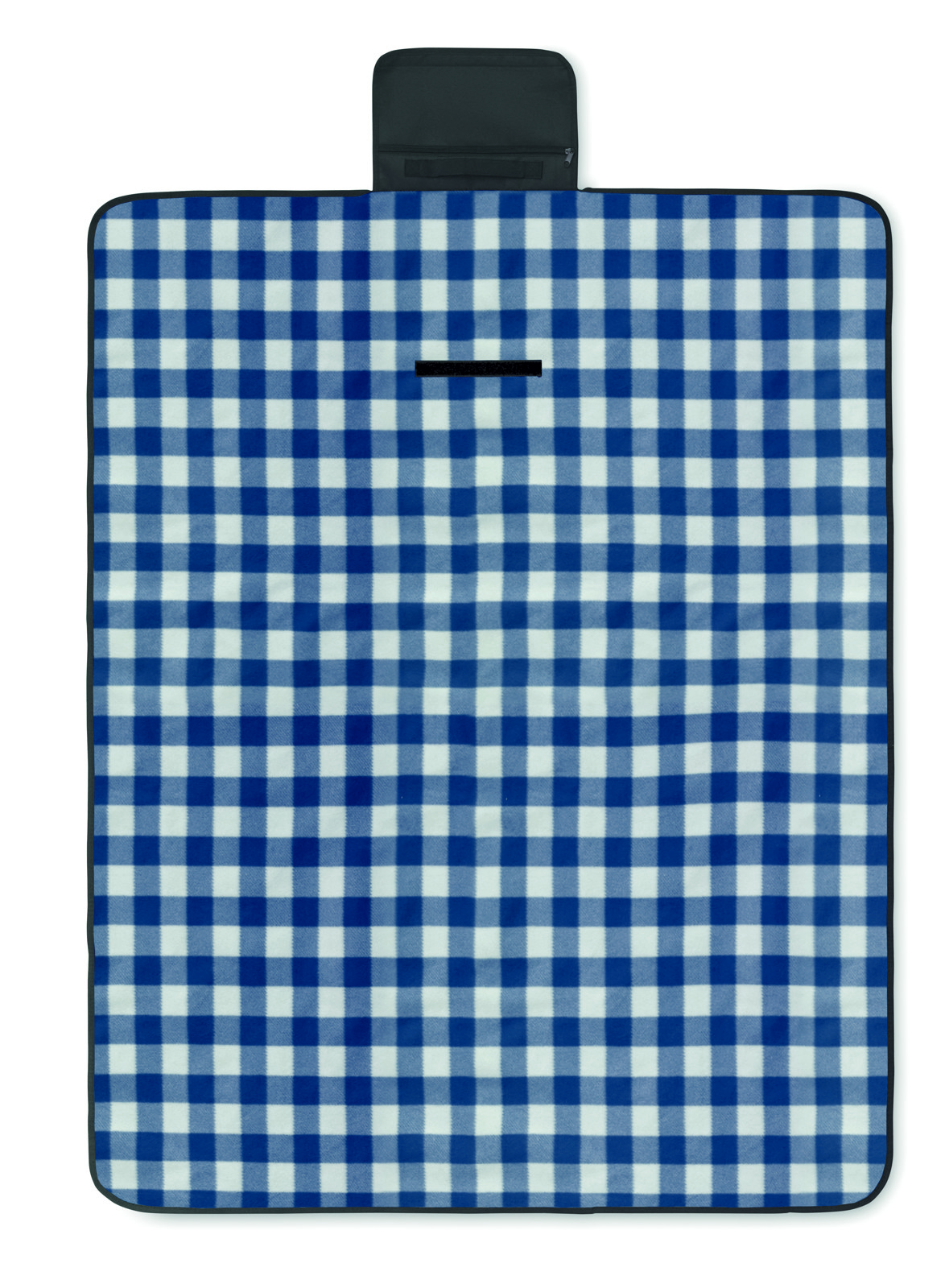 Foldable RPET 150 gr/m² polar fleece picnic blanket with water resistant coated PEVA reverse side. Includes a front zipper pocket and short carry strap.