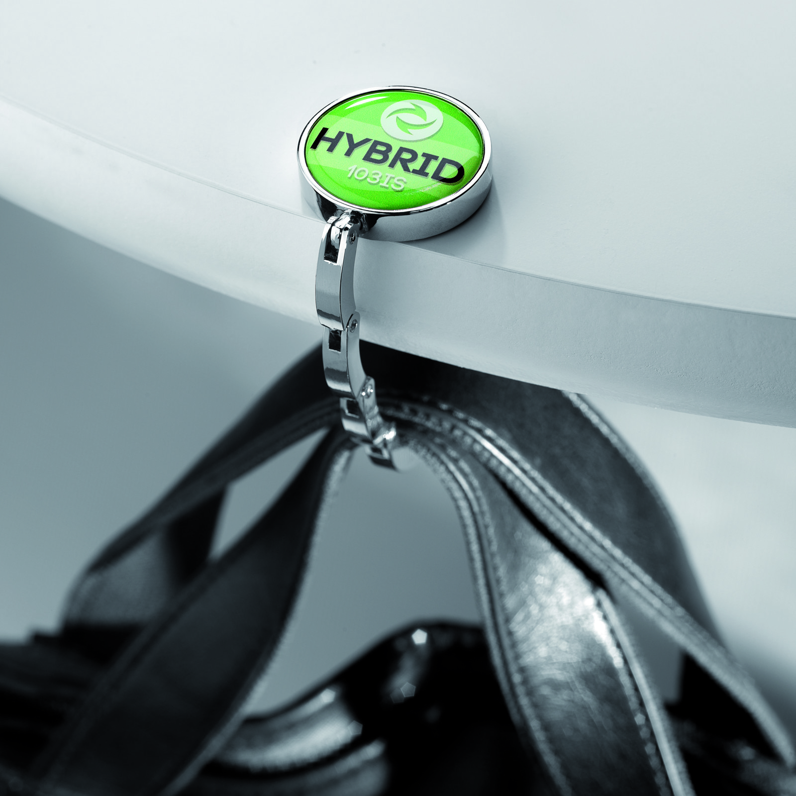 Elégant accroche-sac avec cordon acier ajustable.